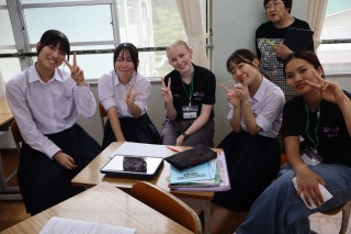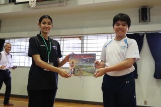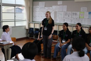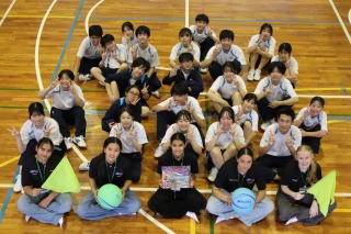 オーストラリアの姉妹都市ホークスベリーから5名の留学生が京丹波町に来ています。今日は一日和知中学校で過ごしていただきました。各学年の英語の授業や給食、全校でのソフトバレーボールなどで交流を深めました。留学生もとてもフレンドリーで、和知中生も積極的に話しかけたりして短時間で打ち解け、とてもよい国際交流の一日となりました。京丹波町には10月17日まで滞在していますので、また会う機会もあるかもしれませんね。