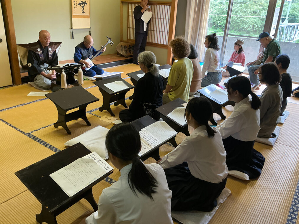 19日(日)に京都府地域プログラム「まねてまなぶ伝統芸能」のワークショップ「まねっこ語り」が和知ふれあいセンターで行われました。本校の2年生3名も参加し、他の参加者と一緒に和知人形浄瑠璃の語りを体験しました。遠方から初めて参加された方や海外からの留学生も参加しておられ、楽しみながら活動していました。講師の和知人形浄瑠璃会さんの模範はさすがでした。来週の文化祭の中学生の人形浄瑠璃も楽しみです。