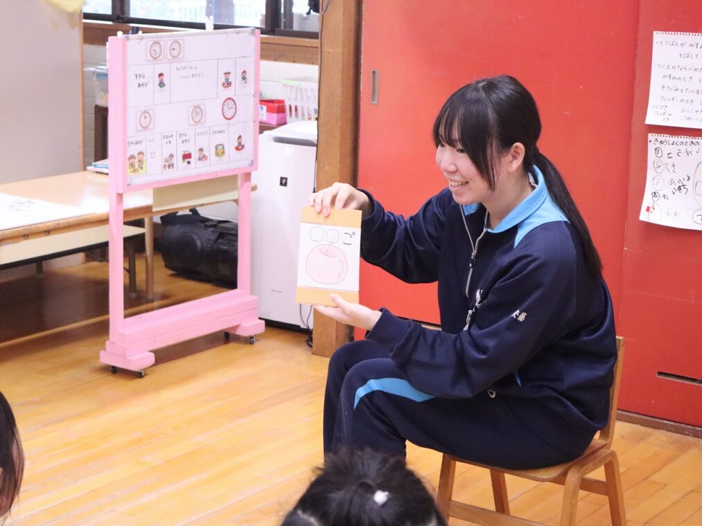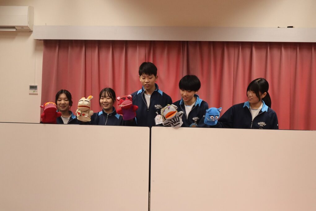 家庭科の授業の一環で、3年生がわちこども園にお邪魔して実習させていただきました。自分たちで作ったパペットを使った人形劇や絵本を使った読み聞かせをした後、各組に分かれて一緒にブロックで遊んだり、鬼ごっこをしたりして楽しみながら幼児教育や保育について学びました。園児たちも中学生もとても良い表情で一緒に過ごしていました。わちこども園の教職員の方々、ご協力ありがとうございました。