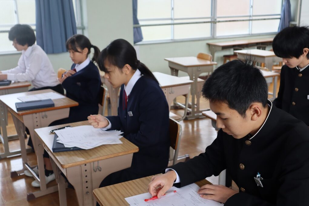 来年の生徒会本部役員の選挙を来月に控え、選挙管理委員会の活動も始まっています。本日役割や日程等の確認のための会議が昼休みに開かれていました。中学3年生は3年度には国政選挙等の選挙権も持つことになります。中学校の選挙活動や投票、開票なども京丹波町会記載台や投票箱を借りるなど、実際の選挙になぞらえた形で実施して、キャリア学習の視点も入れて行います。さて、立候補者はどうなることでしょう?