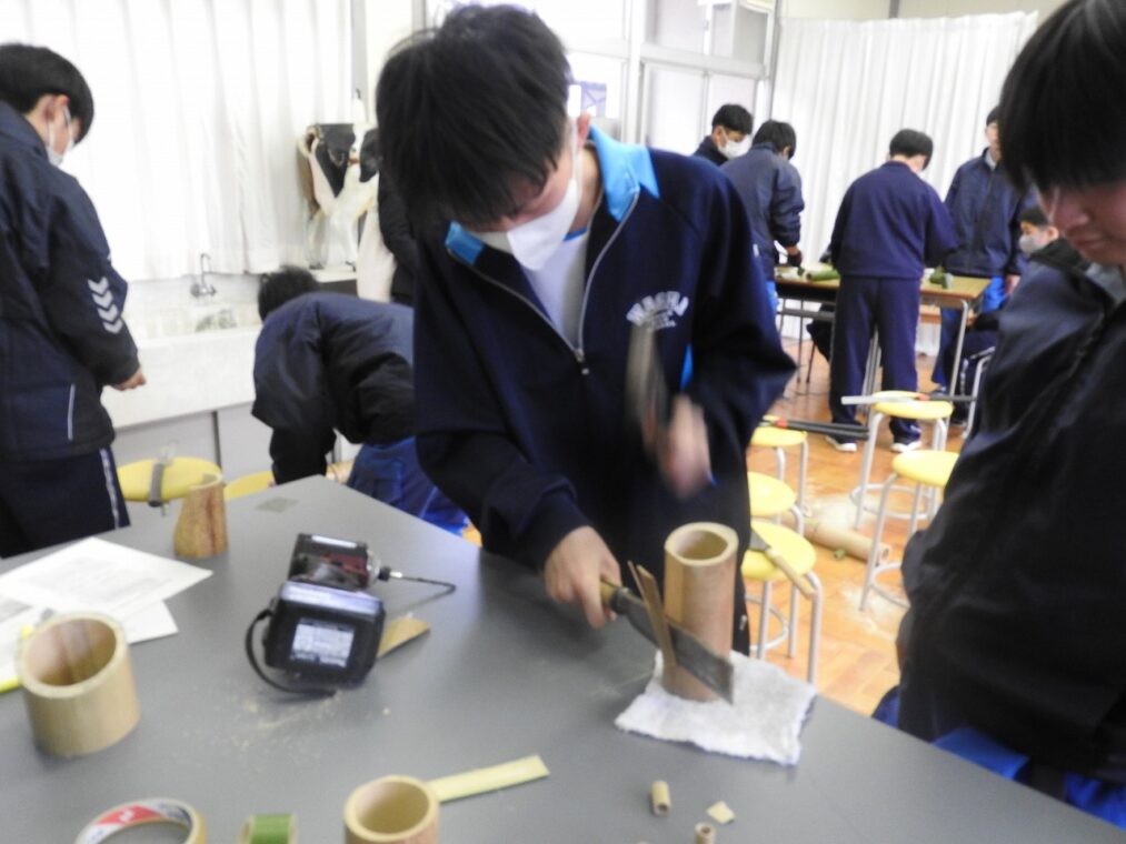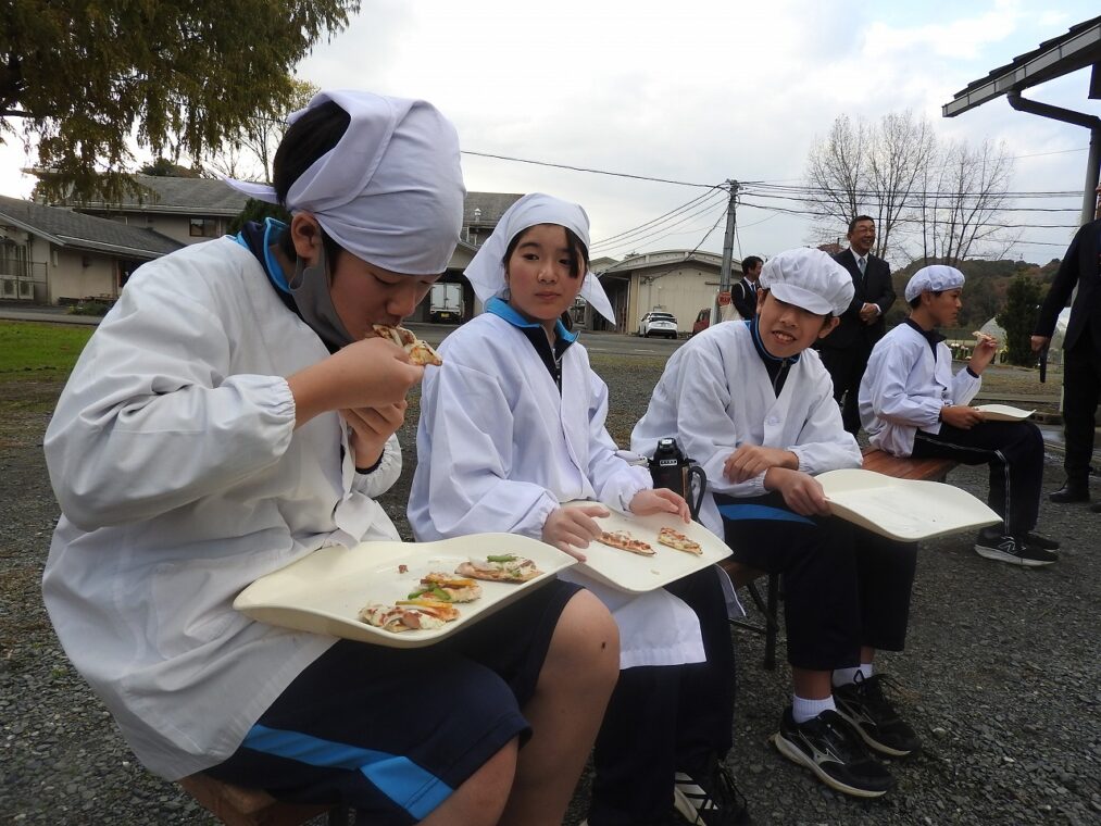 府立須知高校に出向いて、瑞穂中学校の1年生と一緒に環境食育校種間連携パートナースクール事業で高校生からいろいろな活動を一緒に行いながら食や自然環境について学びました。最初にスライドを使った学校紹介を行った後、3グループに分かれて、チーズ作り、竹細工、ピザ焼きにチャレンジしました。高校生も優しく教えてくれ、全員楽しみながら活動しました。須知高校食品科学科のみなさん、ありがとうございました。チーズやピザもとても美味しかった!