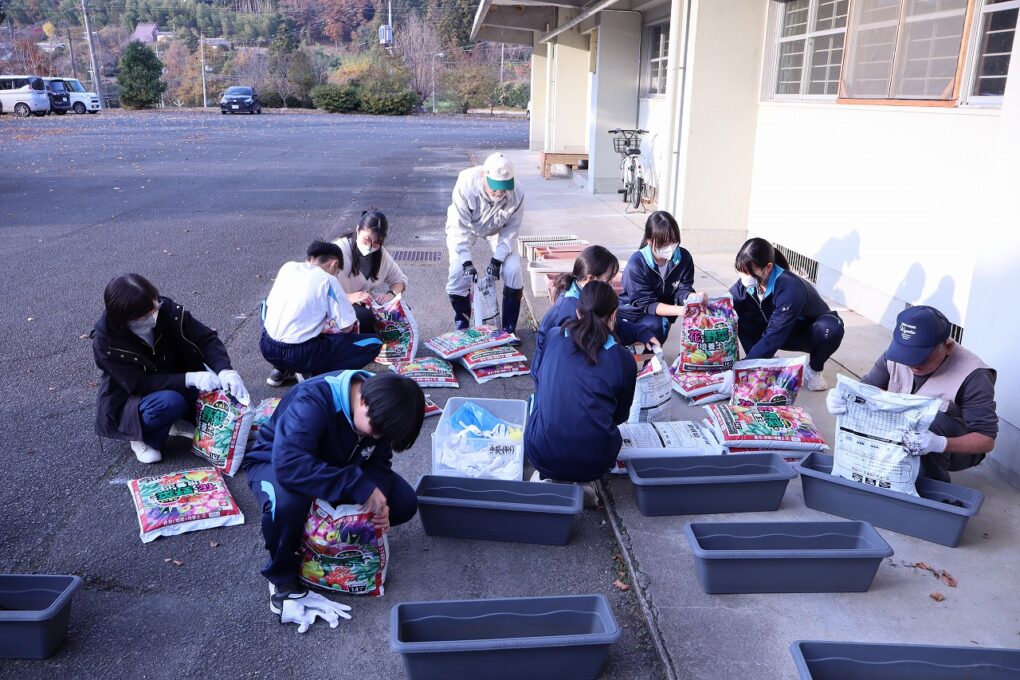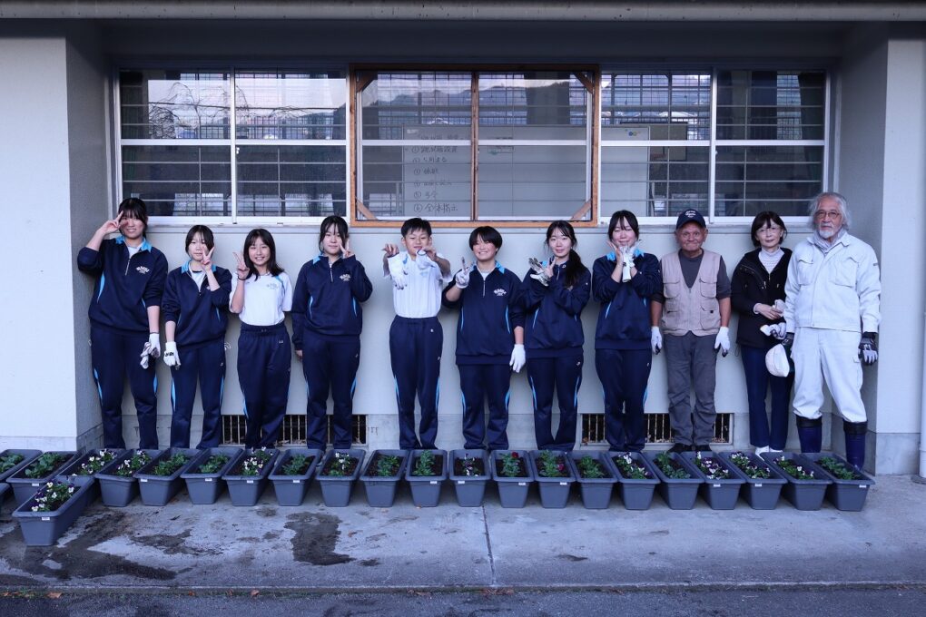 生徒会本部と環境委員会が中心となって実施している「花いっぱい運動」。夏に植えた花も役割を終え、今回は冬バーションでビオラやパンジーに植え替えを行いました。地域の方や学校評議員さんにもお手伝いいただき、能率良く作業が完了しました。近々和知駅や長老苑にも届けます。紅葉の後もこの花が彩りを添えてくれますね。