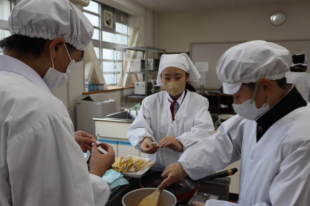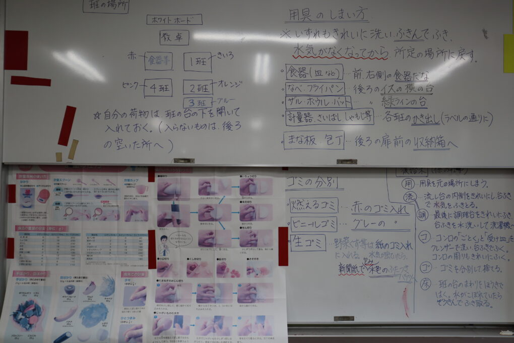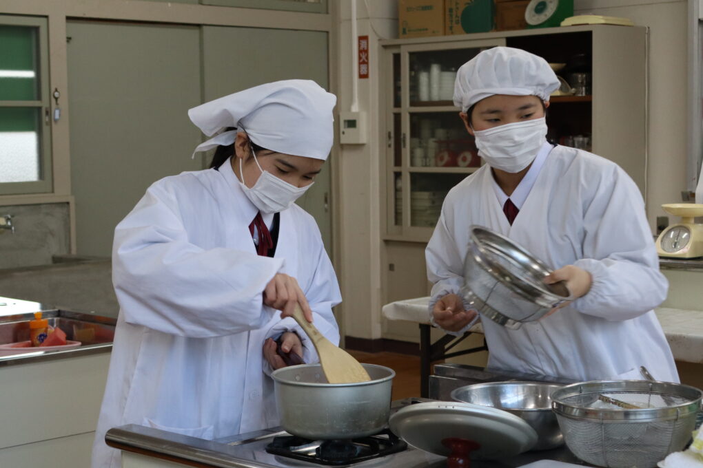 本日、1年生が家庭科の授業にて調理実習を行いました。”グランメゾン・パリ”を彷彿とさせるフライパンさばきや、準備したレシピをしっかりと確認する様子など見られ、実に楽しそうに活動する様子が印象的でした。板書には、全ての情報が網羅され、それを確認すれば生徒達が自分で行程を進められる環境も準備されていました。完成したものは、トマトとコンソメ味のよく煮込まれたおいしいスープでした。ありがとうございました。