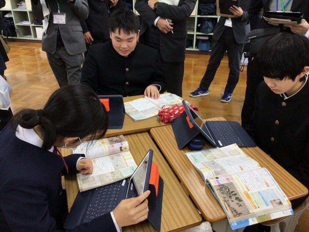 15日(月)に文部科学省指定のリーディングDX事業の公開授業研究会を実施しました。京都府下だけでなく、遠くは岡山県や愛知県からも視察に来られ、70名を超える関係者に授業を参観いただき、その後研究会を実施しました。どの学年も一人一台の学習端末を上手く使いこなし、クラウド上の共有データを有効に活用しながら、仲間と協力し学習課題に取り組んでいました。授業後には見ていただいた先生達からのインタビューもありましたが、自信を持ってはきはき答えており、学び方の工夫の様子を伝えることができたと思います。大勢に囲まれての授業でも臆することなく活動できていて、たくましさも感じました。今後もよりよい授業や指導のあり方を研究していきます。