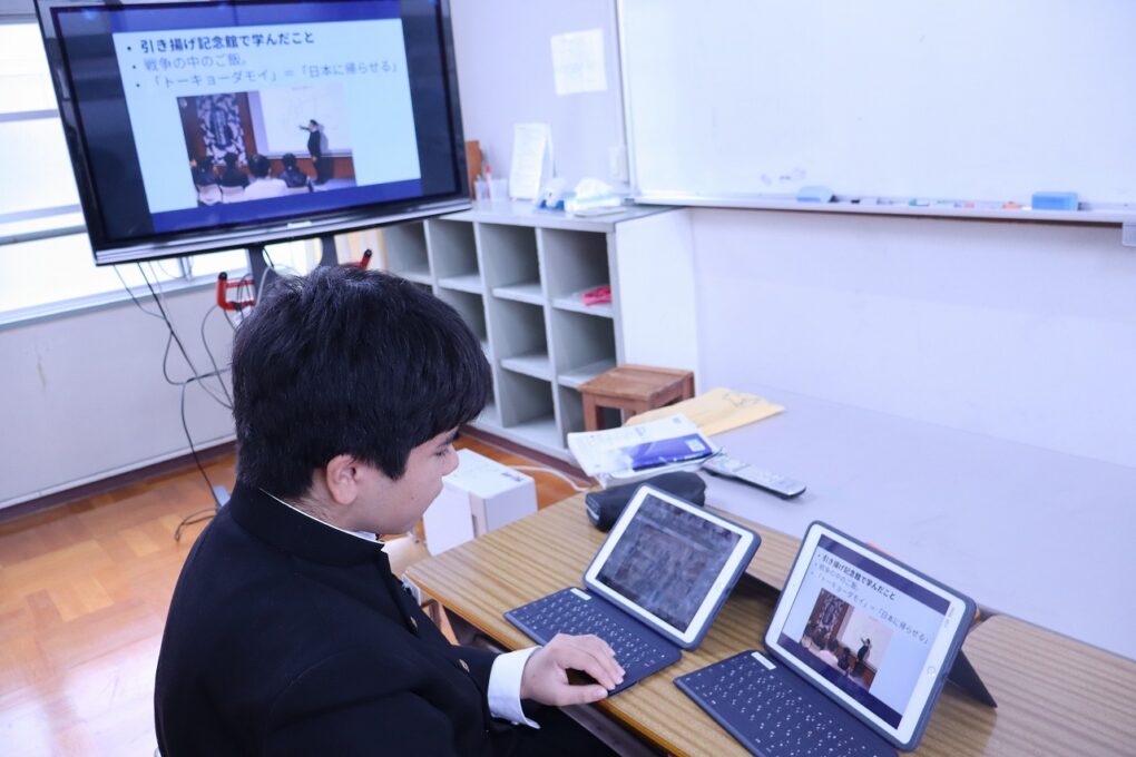 和知学級で12月2日(火)に町内3中学校合同の舞鶴校外学習を実施しました。そのまとめ発表会を、3校をリモートでつないで行いました。それぞれが写真やスライドにまとめ、自分の感想も織り交ぜながら発表していました。発表の後で質問したり、感想を述べ合ったりしてオンラインながらも交流が進みました。