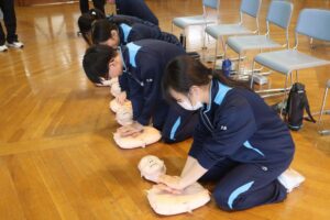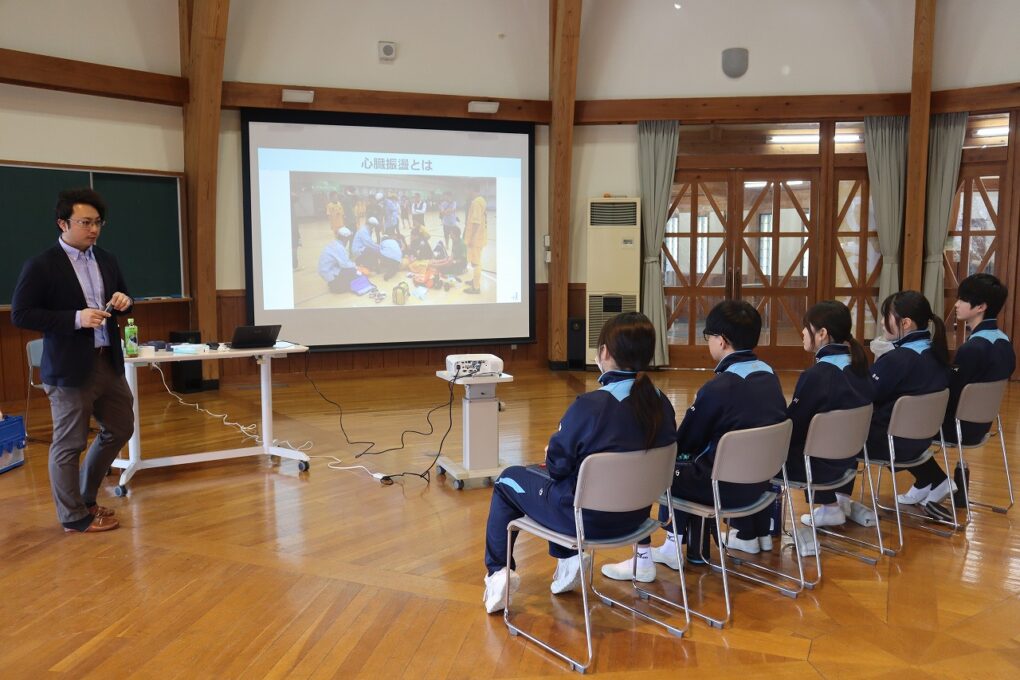 2年生救命救急講習 2026年2月16日 最終更新日時 : 2026年2月16日 校長 明治国際医療大学の原先生をお迎えして、救命救急講習の授業を行いました。最初に映像等も使って命を助けることの大切さやどうやったら救える命を守れるかなどについて学習し、実際に心肺蘇生やAEDの使い方等も全員体験しながら学ぶことができました。 Post Views: 11