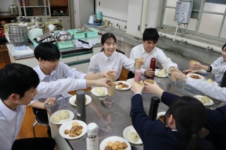 27日(金)、3年生は家庭科の授業で調理実習を行いました。肉まんやクッキーを班ごとに作りました。3年生らしくテキパキ協力して美味しくできあがったようです。クッキーをご賞味させていただきましたが、やさしい甘さで焼き加減も良く、大変美味でした。ごちそうさまでした。中学校での最後の調理実習も良い思い出になったことと思います。