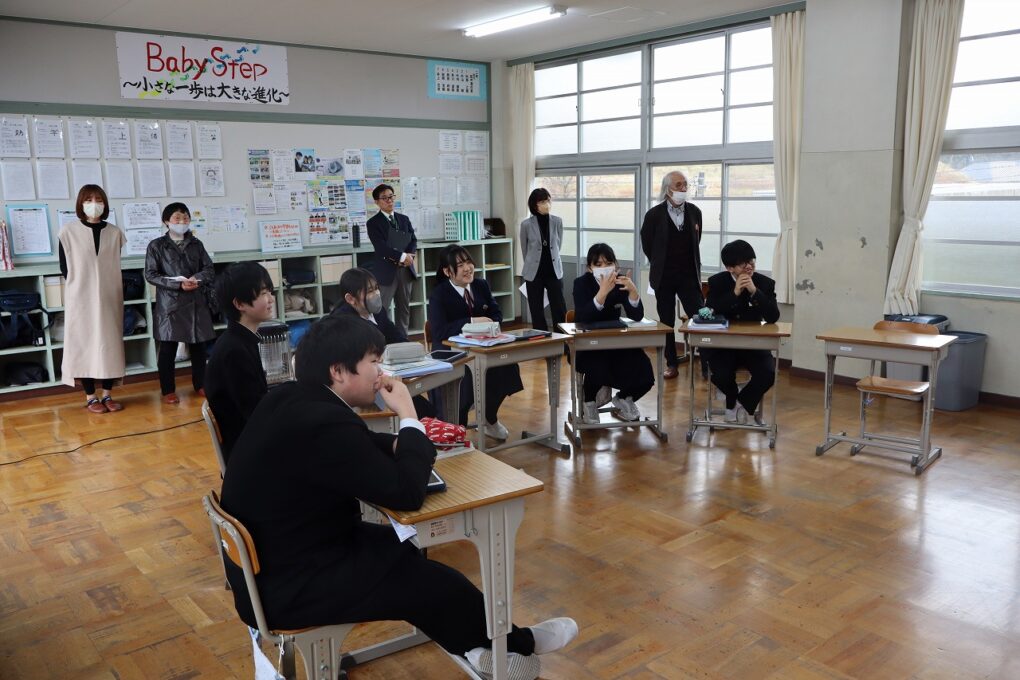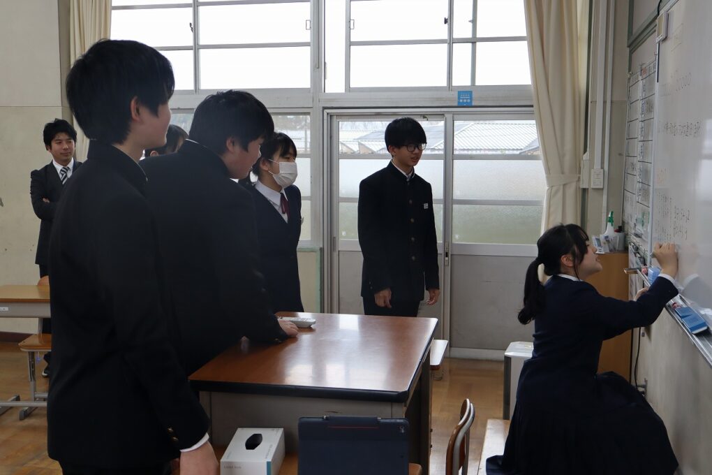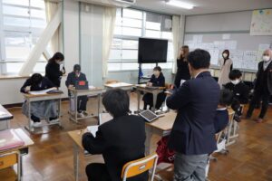 「学校運営協議会」は、学校の方針や運営に対してご意見をいただいたり、実際に地域と一緒になって行う活動に参加いただいたりしている組織です。民生児童委員や区長会、同窓会、PTAの代表の方などにお世話になっています。今日の会議では授業参観や1年間の学校の様子等についてご意見や感想を聞かせていただきました。3年生の社会科、2年生の数学、1年生の英語、和知学級は生活を参観していただきました。今後の学校の在り方も含めて、新年度につながるご意見をたくさんいただきました。