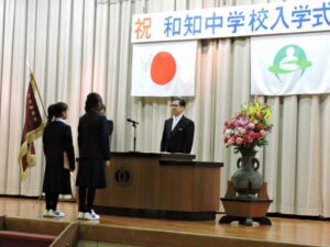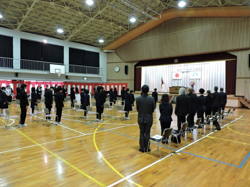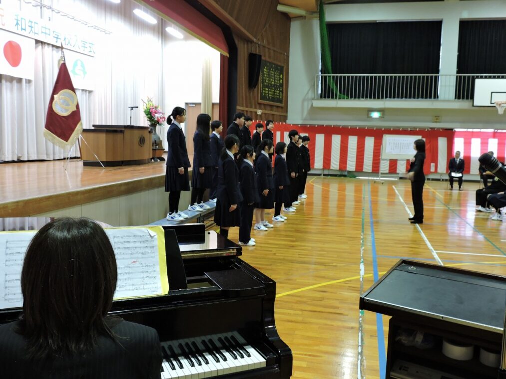 8名の新入生が入学しました。真新しい制服、緊張しながらも真剣に話を聞いている姿が瑞々しく、呼名や誓いの言葉の力強く、よいスタートとなりました。2,3年生の歓迎の言葉や合唱も新入生の心に届く素晴らしいものでした。今日から和知中の新たな1ページが始まります。