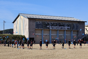 ○全校ダンスでは、チーム毎に自分たちで考えた振り付けでダンスを踊りました。緊張しながらも一生懸命踊る姿に大きな拍手がわき、他学年からも声援が届くなど、温かい空気に包まれていました。