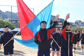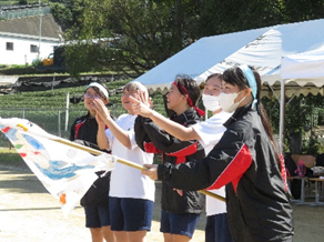 ○天気もよく過ごしやすい日に無事に体育大会を行うことができました。オープニングセレモニーは練習以上に息が合った美しいダンスを披露してくれました。学年種目、ブロック種目ともにどの種目も精一杯頑張り、練習以上の結果を出すこともできました。学年、ブロックの最終種目前には円陣を組んでやる気を入れる姿が見られました。また、今年の体育大会は歴代で初めて赤、青両チームが同点優勝を果たしました。最後まで諦めず一生懸命やりきる姿は心を打つものがありました。生徒の皆さん、お疲れ様でした。