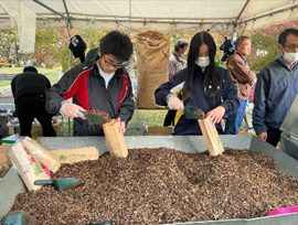 ○和束小学校の3,4年生と合同で施肥作業を行いました。小学生と同じ視線に立ちながら作業に取り組む姿に、みんなの成長を感じました。来年度もおいしいお茶ができることを楽しみにしています。