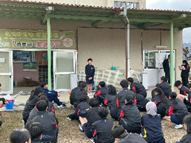 ○消防の方に来ていただき、避難訓練を行いました。今回は火災の訓練でスモーク体験を行い、火災時の視野の悪さを体感しました。想像以上の視界の悪さに多くの生徒が驚いていました。体験を通して、避難時の姿勢の大切さを学ぶことができました。これからの季節は全国的に火災の件数が増えます。火の元に注意しましょう。