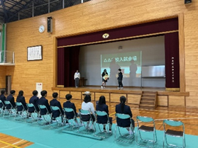 被爆者である八木さんからお話をいただきました。戦争を経験した方の言葉は重く、生徒たちも真剣な表情で話を聞いていました。
