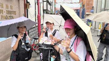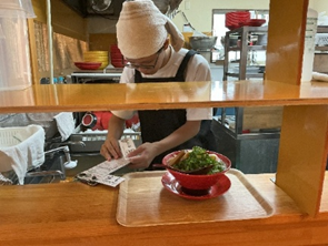 ○校外学習で京都市内に行きました。午前中は手作りおたべ体験を行い、午後からは5つの班に分かれて、京都市内を散策してきました。班別活動では、観光名所を訪れるだけでなく、観光客に和束町をPRしました。1年生23人全員で校外学習を行うことができ、充実した1日となりました。