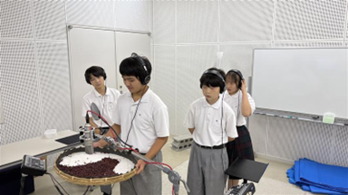 ○校外学習で大阪電気通信大学と大阪コリアタウンへ行きました。大学では効果音作成やモーションキャプチャー等の映像関係の体験や、内視鏡手術シミュレーション等の医療に関わる貴重な体験させていただきました。コリアタウンでは人権学習でお世話になった木村さんにインタビューを行いお土産を買うことや、和束町の魅力を現地の方々に伝える等、異文化を肌に感じた非常に有意義な時間になりました。