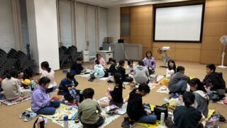 京エコロジーセンターに到着後、お弁当を食べました。みんなとても嬉しい様子です。 その後、環境について考えるグループワークを行なっています。八木東っ子の「ごみへらし隊」が元気に活動中です!