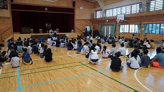 23日、昼休みと掃除の時間を活用して、ニコニコ班(縦割り班)でクイズラリーを実施しました。これは本校では初めての取組となります。 始めに全校生がニコニコ班ごとに体育館に集合し、この取組を企画した児童会本部役員が内容を伝えました。ニコニコ...