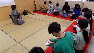 地域とともにある学校づくり 6年生 茶道体験 2月6日(金)、講師をお招きし6年生で茶道体験教室を実施しました。まず、お茶の歴史や茶道の作法、道具の説明など、丁寧に分かりやすく教えていただきました。また「わび・さび」の意味や茶道をおこなう上で大切にされている「和・敬・清・寂」という... 2026.02.12 地域とともにある学校づくり学習