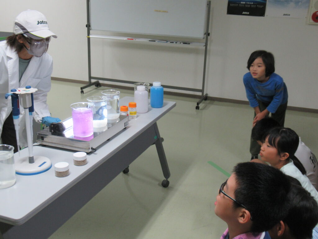 まず、南丹保健所の方と共に、「SDGs」について復習をしました。今回の見学を通して『環境』に対して自分にできることがないかを考えてほしいというお話を聞いた後、工場の方から「八木工場について」と「環境に対して取り組んでいること」の説明をしていただきました。太陽光発電に力を入れておられることやゴミを減らす努力など、環境に関わる取組をたくさんしておられることが分かりました。また、工場から出る汚れた水もきれいにしておられることを実際に目の前で実験していただき、教えてもらいました。その後、工場内を見学し、簡単な作業も体験させてもらいました。