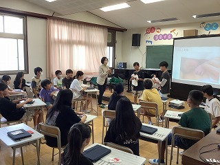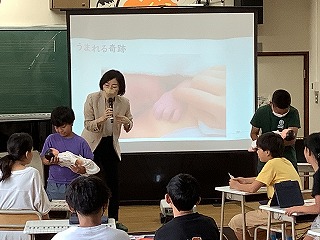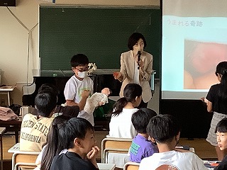 9月25日(木)に、第6学年 学年PTA「みんなで道徳」を行いました。助産師の経験者である看護学校の先生を講師としてお招きし、様々な体験活動を交えながらお話を聴かせていただきました。