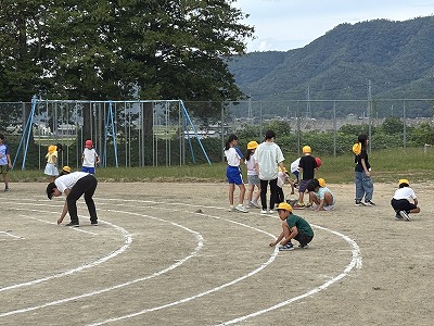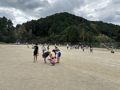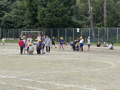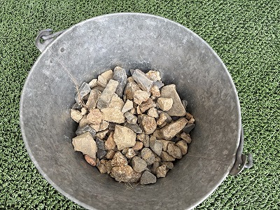 夏にかけて生えたグラウンドの草は、PTAの皆様や学校運営協議会の皆様にお世話になり、きれいに引き抜かれたのですが、どうしても草とともに石も掘り出されることがあります。見つけた時には、その都度拾っていただいたのですが、広い運動場にある細かな石まではなかなか拾いきれませんでした。何よりもその石で怪我をしたり、踏んで捻挫をしたりしないように、子どもたちが安心して走ったり演技をしたりするグラウンドでなければいけません。そこで全校生をニコニコ班(縦割り班)に分け、班で競いながら拾う「石拾い大会」をしたのです。子どもたちは、小さな石も見落とさずしっかり拾ってくれました。おかげでグラウンドがとてもきれいになりました!みんなありがとう!