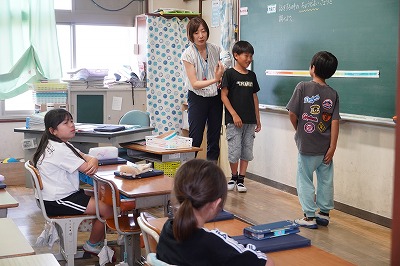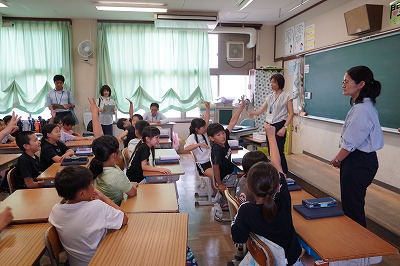 またこの日は、八木中学校ブロックの公開授業として位置づけて、幼児学園の先生や隣の小学校の先生、中学校の先生に参観していただきました。
