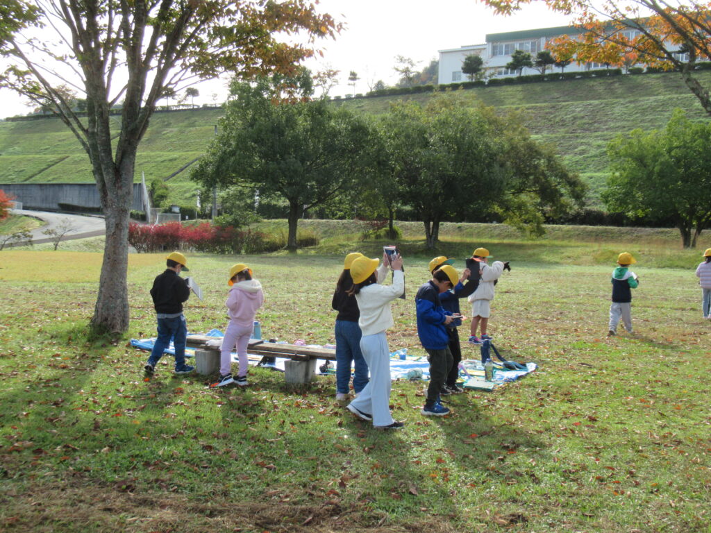 文覚ふれあい公園では、秋と仲良くなるをテーマに「秋みつけビンゴ」や「秋のものひろい」などを行いました。ビンゴでは、タブレットを活用し、見つけた秋を写真に撮りました。学校にはない『秋』を見つけようと一所懸命の1年生!見つけた秋を先生達に紹介する姿がとてもかわいかったです♪秋のものひろいでは、袋いっぱいにどんぐりや落ち葉などの秋を詰め込み、秋と仲良くなった子どもたちでした!!偶然にも、コウノトリとも出会え、素敵な体験ができました。