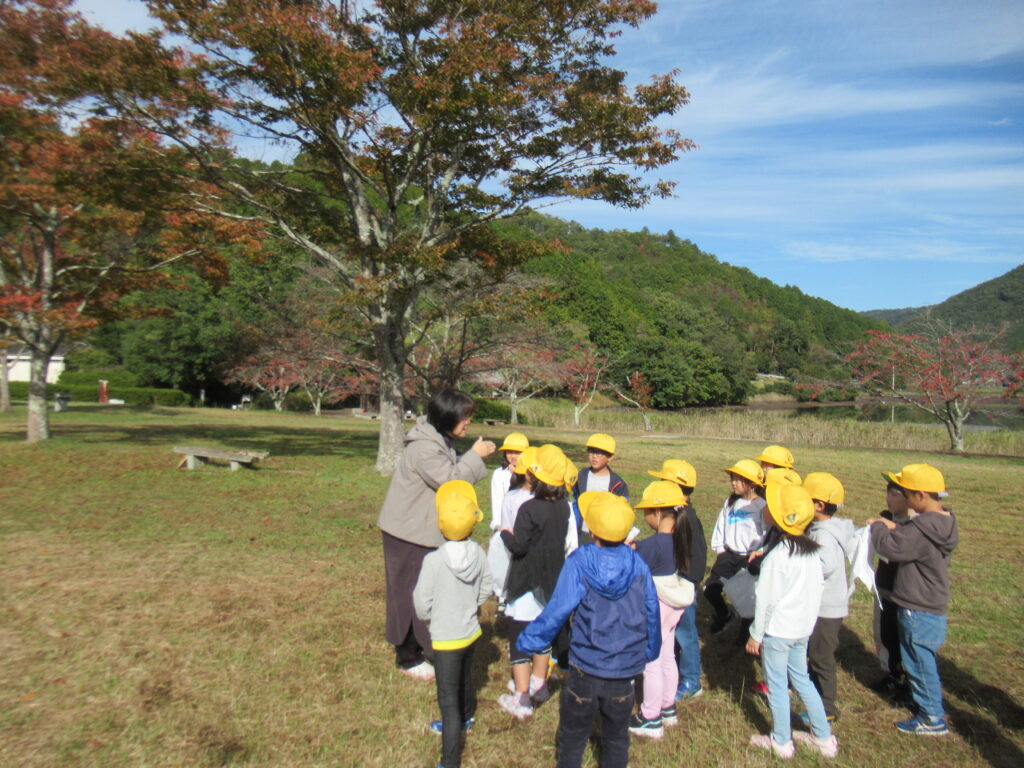 4日(火)に生活科『あきとなかよし』の学習で、文覚ふれあい公園と舩井神社、新庄郷育館に秋見つけに出かけました。