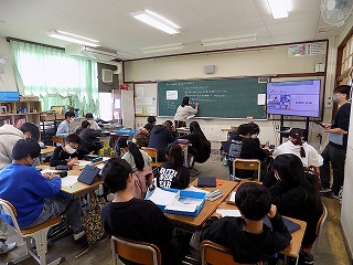 初めに、自画撮りをして人に送ったりSNSにあげたりしている人は、どの年代の人が多いと思うか尋ねたところ、「高校生や大学生」と思っている子どもたち。実際に被害にあっている多くは「中学生」であることに驚いていました。しかも、相手は見知らぬ人やゲームでつながった人などのイメージも持っていましたが、実は身近な友達や先輩、交流のある知り合いなどが圧倒的に多いことも驚いていました。なぜ送ってしまうのかという問いについては、「信頼していたから」「好きだったから」「脅されたから」「断ったら気まずくなるから」など、相手が身近な存在だからこそ強く断れない状況に追いやられてしまうことも学びました。それを防ぐためにどうすればいいのかについては、友達や家族、先生など、信頼できる人や大人に相談できるように、普段からいろんな話をしておくことや、おかしいと思ったら絶対に一人で悩まず、身近な人や相談窓口などにすぐに相談することが大切だということも学びました。