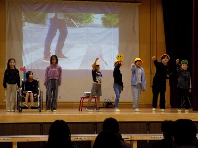 インフルエンザに罹患した子どもたちもたくさんいましたがセリフを覚えたり、登校している児童は小道具を準備したりと、できることを少しずつ積み上げました。20日(木)実施の校内発表会では、インフルエンザの蔓延を防止する観点から、各教室へのリモート配信での鑑賞となりましたが、子どもたちは本番前のよきリハーサルになり自信をつける機会にもなったようでした。