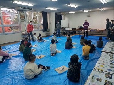 2年生は、生活科「もっと知りたい まちたんけん」の学習の一環として、地域にある新庄郷育館に行ってお皿づくり(陶芸)の体験活動をしました。