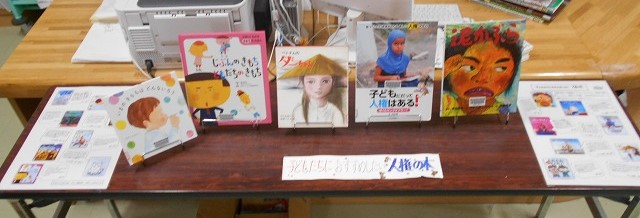 毎年恒例となっています「人権絵本」を紹介するPTA「ふれあい新聞」が、先日発行されました。今年もPTA人権委員の皆様や教職員が、ぜひ読んでほしい絵本を紹介しています。先駆けて職員室前の図書コーナーで子どもたちに紹介し、今は図書室にコーナーを設置して、貸し出しを受け付けています。家で「借りてきて!」と言われ借りる子どもたちもいます。ぜひこの機会に多くの子どもたちはもちろんんのこと、保護者の皆様にも子どもさんと一緒に読んでいただけたらと思います。