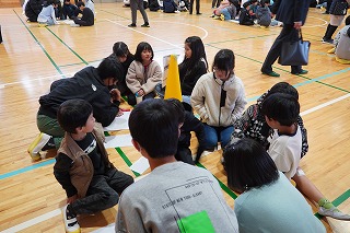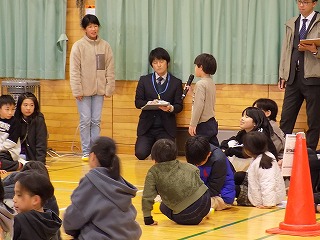 八木東小学校で2年間にわたって取り組んでいるニコニコ集会「全校コミュニケーションタイム」を南丹市の先生方に参観していただきました。多くの先生方に参観していただくのは、昨年に引き続き2度目です。コミュニケーションタイムでの簡単なゲームを通して、「Aさんは、こんなことが好きなんやで」「Bさんは、こんないいとこあるんやで」と相手のことを知ること(人権教育)、今後必要とされる対話力の基礎を楽しく育むこと(コミュニケーション力の育成)、みんなで共通体験をすること(集団での活動の意義)を目的に実践を積み上げています。