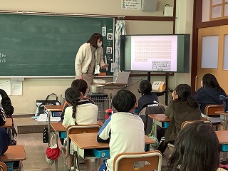 給食感謝週間に合わせて、栄養教諭の迫先生に、食育指導をしていただきました。3~6年生は、「どうすればじょうぶな骨をつくれるのか」について考えました。