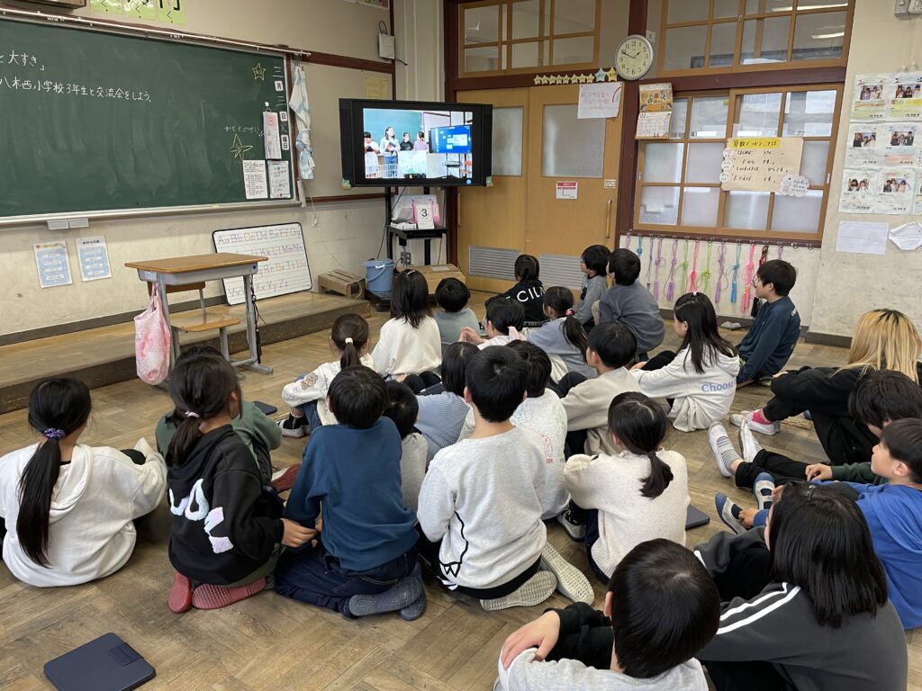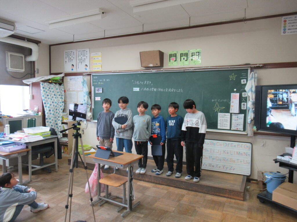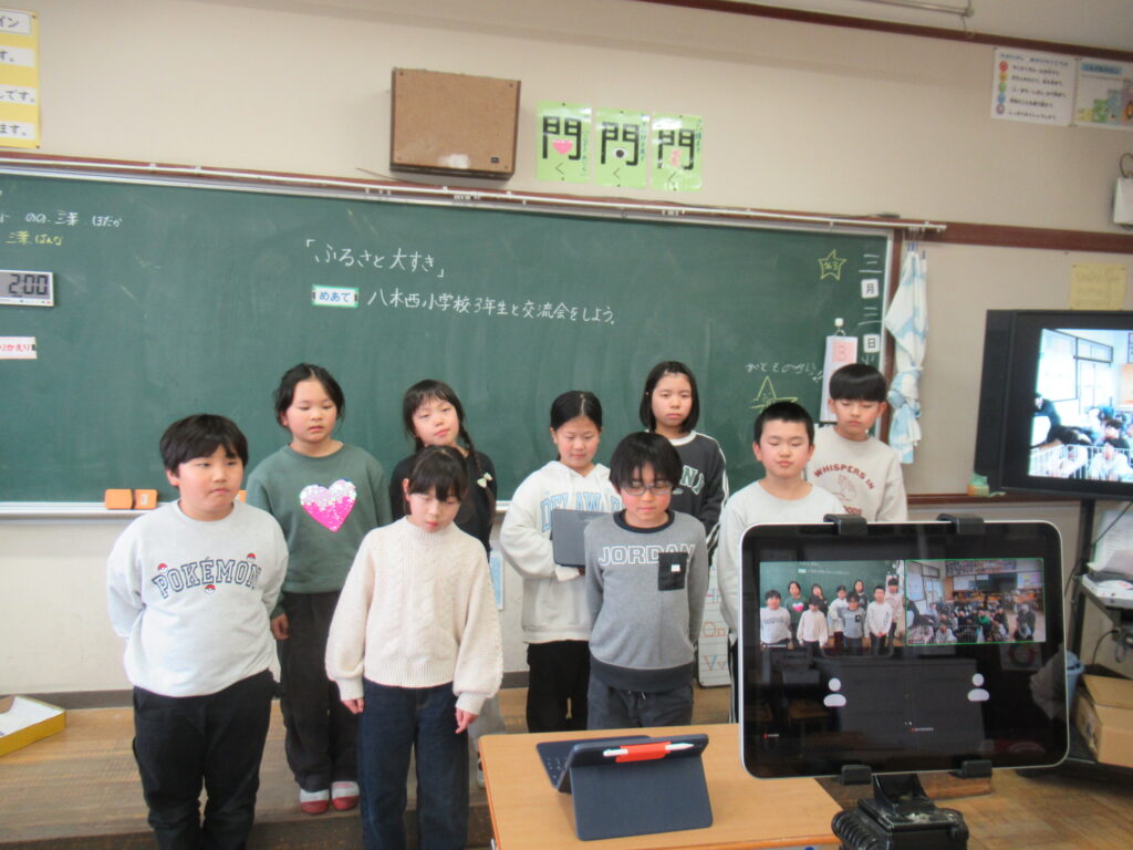 3日(火)に総合的な学習の時間のまとめとして、八木西小学校の3年生とオンライン発表会を行いました!それぞれの学校で、自分たちの地域の特徴や地域の宝(場所・人など)について調べてきた3年生。