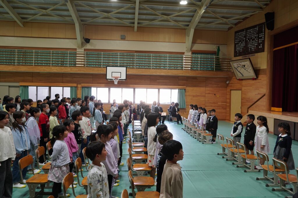 13名の1年生が入学しました!入学児童呼名では、緊張しながらも元気に返事をする姿に、「小学校生活を楽しもう!頑張ろう!」という気持ちが伝わってきました。