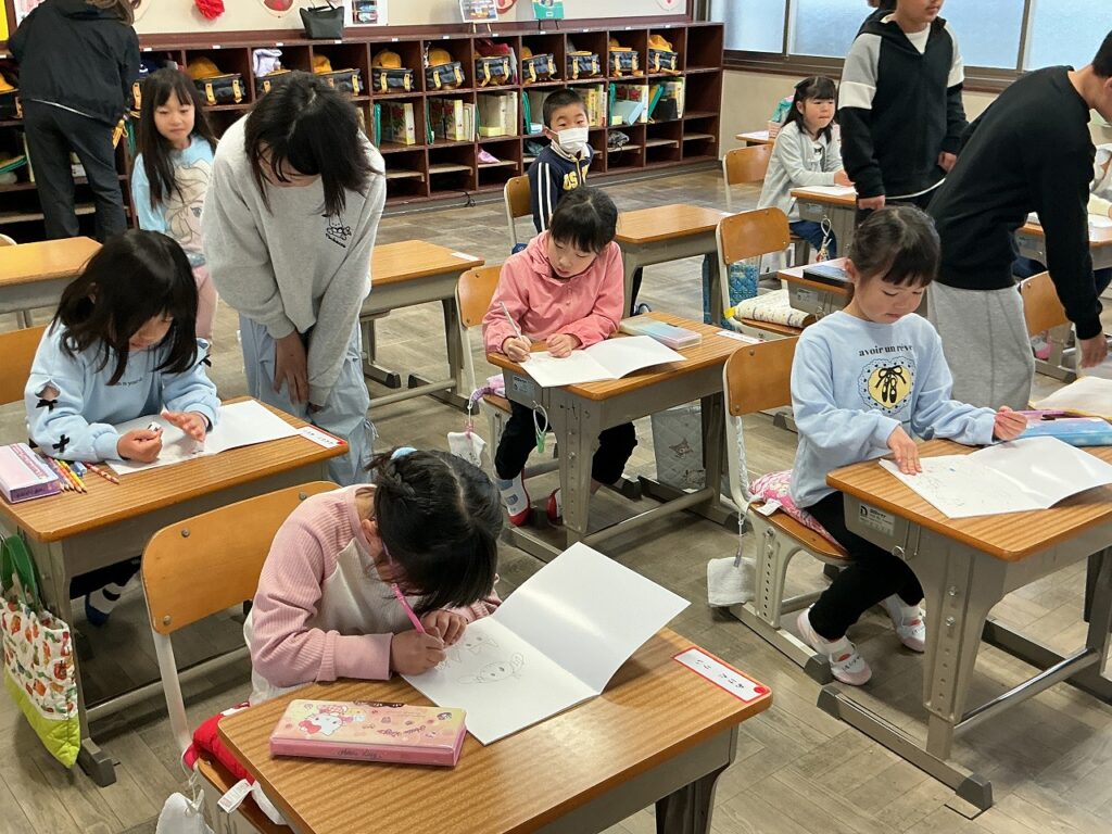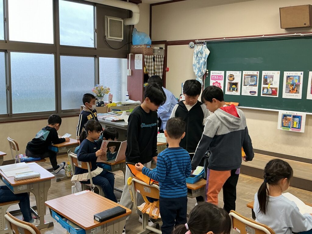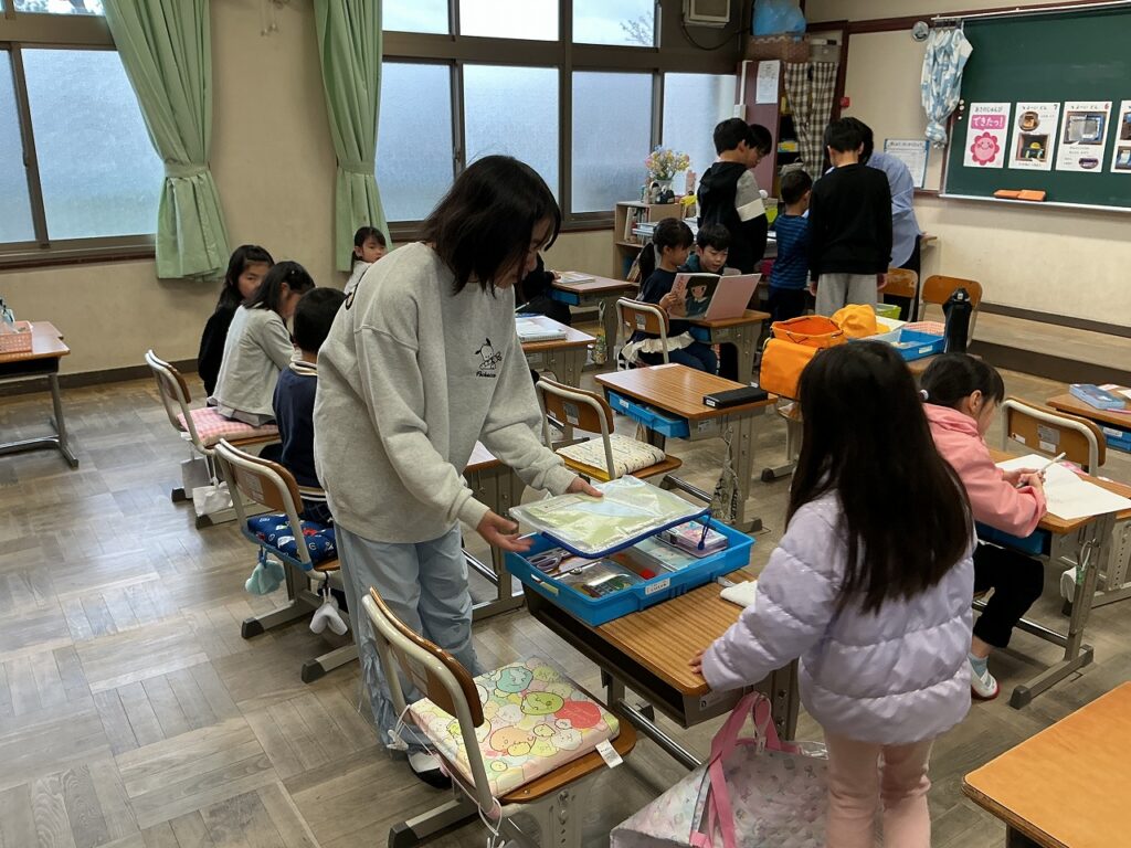 10日(金)は、1年生の登校初日でした。あいにくの天気でしたが、元気に登校してきました。1年生教室では、6年生がスタンバイ。提出するものの確認や引き出しやロッカーの整理の仕方など、6年生が丁寧に教えてくれました。教えてもらいながらも、上手に朝の準備ができた1年生。その後も、友達と話したり、本を読んだり、自由帳にお絵描きしたりと、各々の時間を過ごしました。先生のお話もしっかり聞いていました!