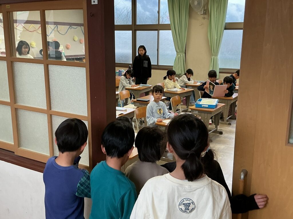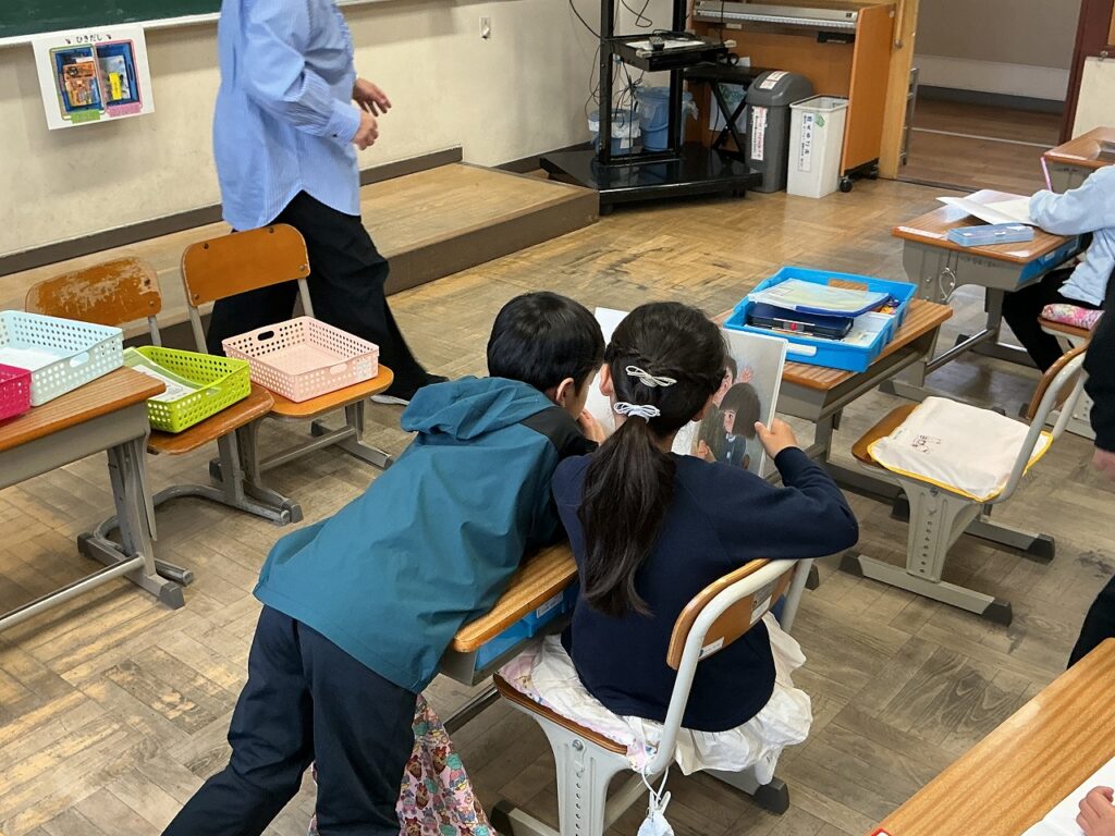 学習 10日(金)は、1年生の登校初日でした。あいにくの天気でしたが、元気に登校してきました。1年生教室では、6年生がスタンバイ。提出するものの確認や引き出しやロッカーの整理の仕方など、6年生が丁寧に教えてくれました。教えてもらいながらも、上手に朝の準備ができた1年生。その後も、友達と話したり、本を読んだり、自由帳にお絵描きしたりと、各々の時間を過ごしました。先生のお話もしっかり聞いていました!