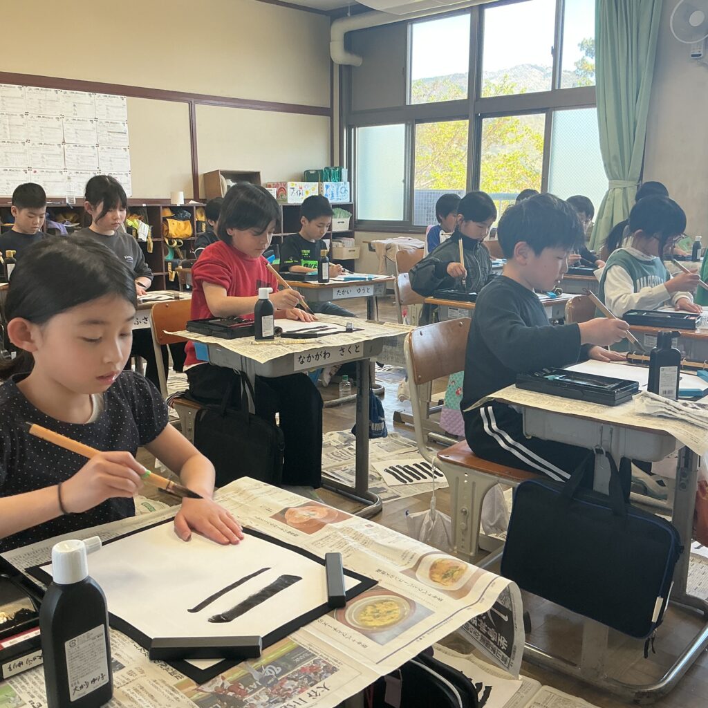 伸びた背筋。半紙を見つめる真剣な眼差し。緊張しながら筆を動かす子どもたち。