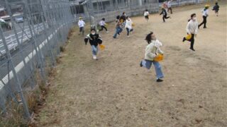 今回はふえおに(鬼がどんどん増えていくおにごっこ)をしました。寒い中でしたが、みんな楽しそうに追いかけていました。