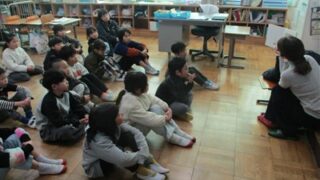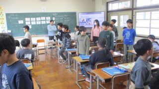 4年生は外国語活動で、道案内について学びました。真っすぐ行く、左右に曲がるなどの言い方を知り、みんなで声に合わせて体を動かしました。