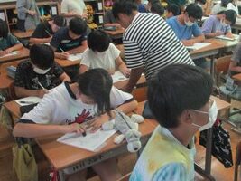 2025/9/18 【6年】円柱に穴の空いた形の体積 6年生 Facebook 2025.09.18 算数で体積の学習をしています。今日は円柱に穴の空いた形の体積を求めました。小数のかけ算がたくさん出てくるなどして、計算が大変だと言っていました。みんなで教え合いながら頑張って解きました。 Post Views: 74