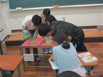 2025/10/27 【5年】平均 5年生 Facebook 2025.10.27 5年生教室で、1リットルますに水を入れて何かをしていました。量がバラバラに入った水を、同じ量にするために、話し合いました。 Post Views: 21
