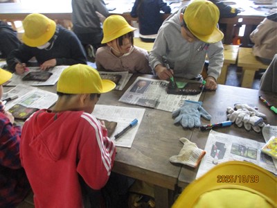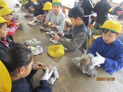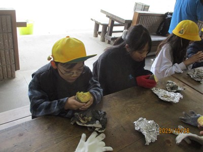 2025/10/28 【4年】野外学習~るり渓~ 4年生 Facebook 2025.10.28 4年生は野外学習に行きました。待ちに待った野外学習にワクワクしていました。到着して自分たちで火をおこし、焼き板を作りました。思い思いの絵を描き、今日の思い出を焼き板に表しました。また焼き芋を作り、食べました。「おいしい!」と口いっぱいにしていました。気温も少し低く、天気も少し心配でしたが、元気に活動できました。たくさんの思い出ができたことと思います。 Post Views: 37