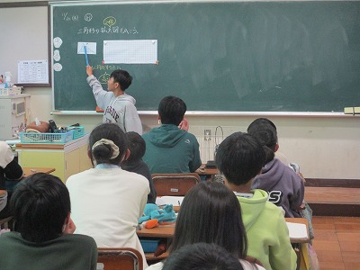 2025/11/20 【6年】図形の拡大と縮小 6年生 Facebook 2025.11.20 算数科の学習で図形の拡大と縮小について学んでいます。「この図を2倍にするには、まずこの辺のマスを2倍にして……。」と、わかりやすい伝え方を意識して説明していました。 Post Views: 20