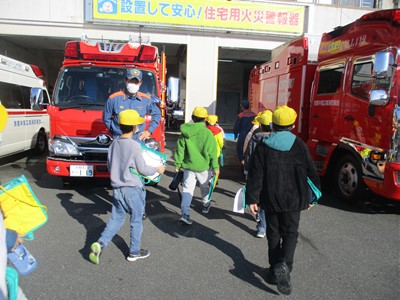 2025/11/26 【3年】消防署へ行こう 3年生 Facebook 2025.11.26 社会科の学習で園部消防署へ見学に行きました。建物内を見学したり、訓練の様子を見せてもらったりしました。はしご車や救急車も見せてもらい、大満足の3年生でした。 Post Views: 19