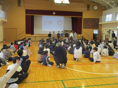 2026/2/6 集会(給食委員会) 1年生 Facebook 2026.02.06 今日の集会では、給食委員会が行った先生インタビューからの○×クイズでした。「○○先生の好きな給食は●●である」「△△先生の小学生の時に好きだったメニューは▲▲である」など、以前のインタビューをよく見ていないと答えられないものでした。子どもたちはよく知っていて、全問正解者が多数いました。 Post Views: 5