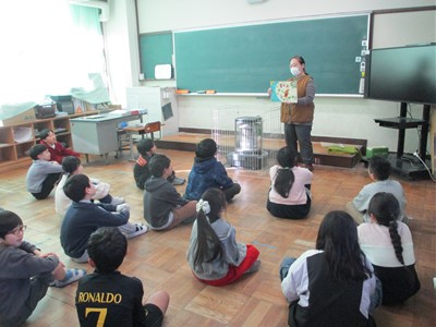 1年生今日は今年度最後の読み聞かせでした。今日もおもしろかったり、じっくりと聞けたりするお話を読んでもらいました。最後には子どもたちからもボランティアのみなさんにお礼を伝えました。また来年度もよろしくお願いします!1年間ありがとうございました!