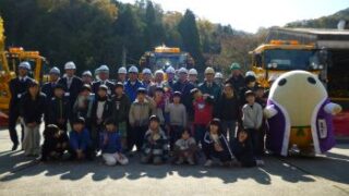 1・2年生が京都府除雪機械出動式に出席しました。激励の言葉を伝え、みんなで書いたメッセージや花束を渡しました。除雪機械が1年生の「除雪機機械、前へ、進め!」の合図で少し前に進みました。除雪機械に乗せてもらったり、質問に答えていただきました...